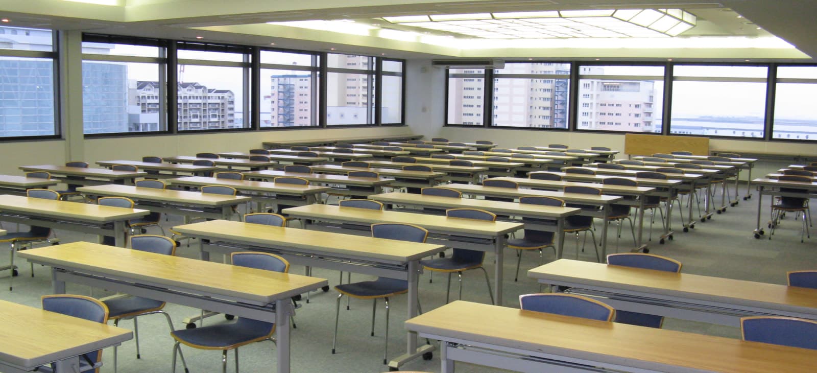 目的に合わせて、テーブルをフレキシブルにレイアウトできます。会議に不可欠なスクリーンやプロジェクターなどの備品類が充実した会議用の貸し会場です。